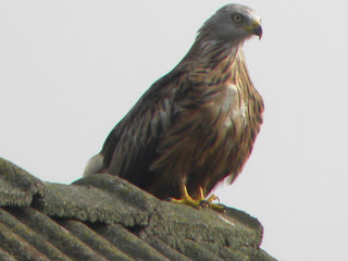 Den här ståtliga Gladan satt på stalltaket precis ovanför rastgården där katterna bruka vara.Nej katterna fick inte vara ute medan han kollade läget.