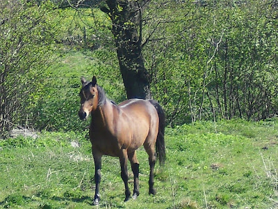 Denna syn är något som gör vistelsen på landet så härlig.Att se hästarna strosa runt i betet komma fram till en och gärna ta emot en morot för att sedan lunka iväg igen .Härligt.