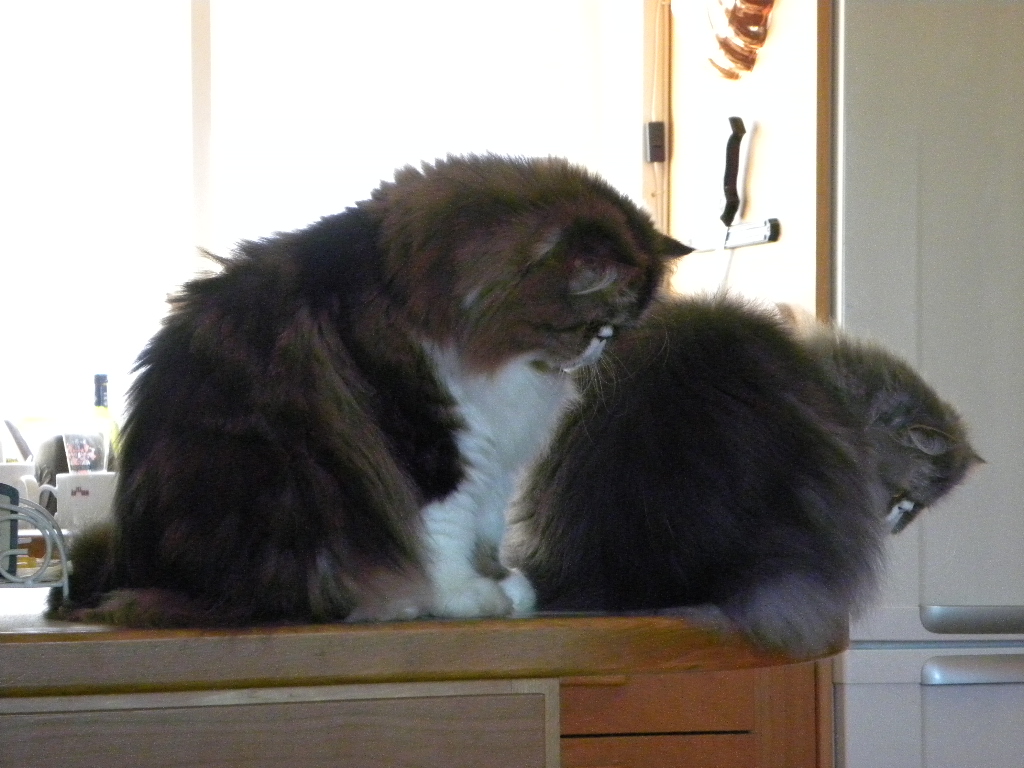 Bröderna pälsmonster kollar läget.Vadåååå inte sitta köksbänken vilket skitsnack :)))
